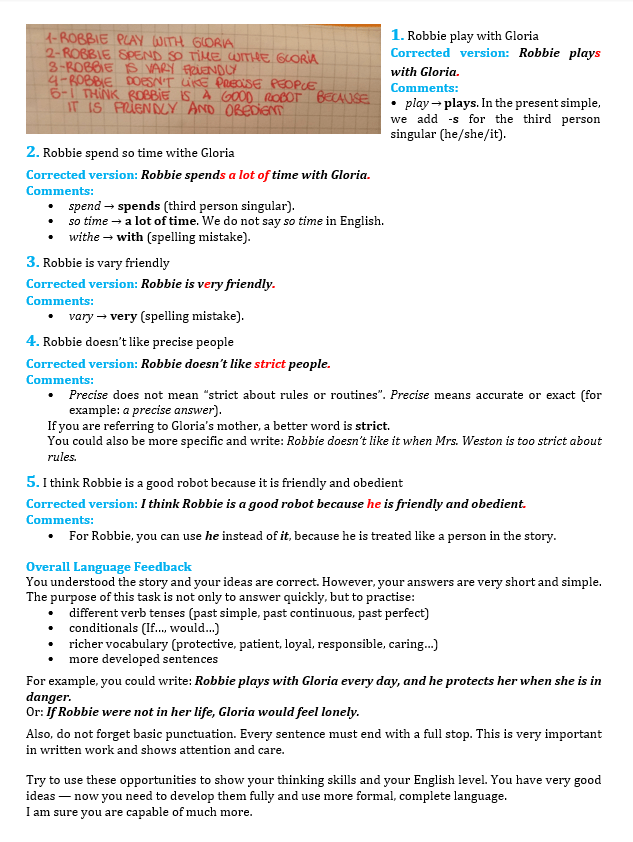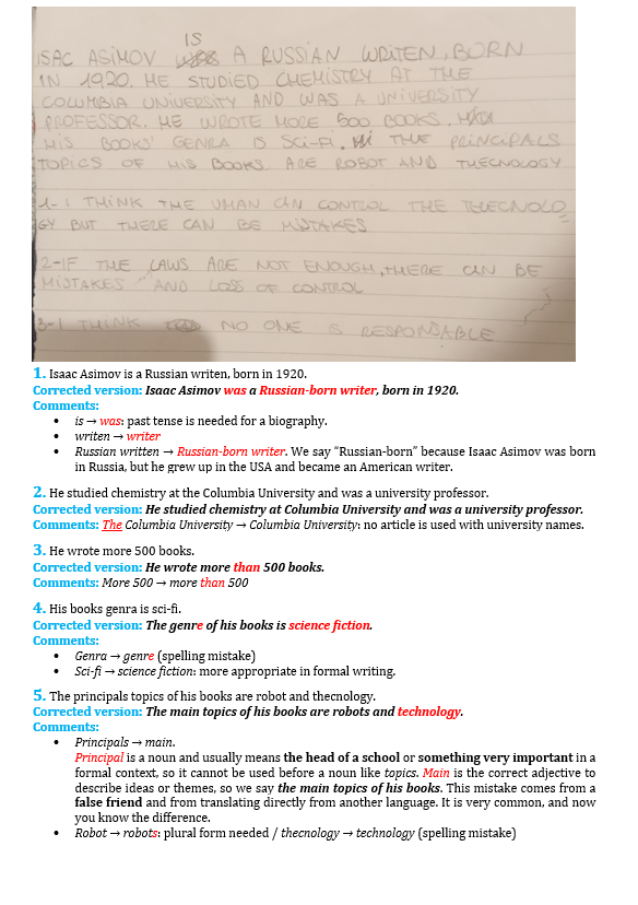 Tutti i compiti devono essere caricati entro il lunedì successivo, per permettere all’insegnante di correggerli prima della lezione.